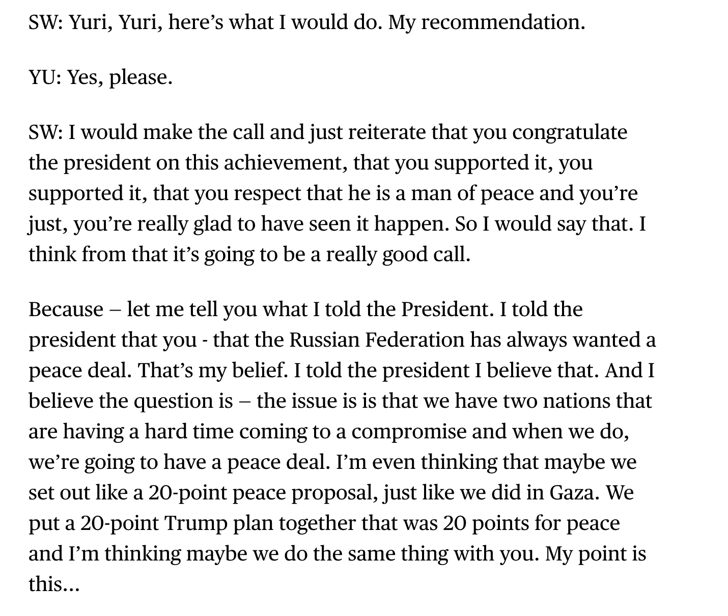 NEWSFLASH: Witkoff was secretly giving Russians advice