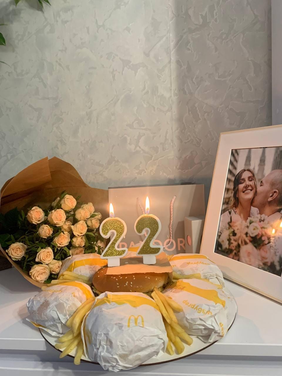 “I began joking with my husband that if it opens before my birthday, I want a cake made of burgers or a mountain of burgers — basically, I begged him to bring me those burgers…He told me that he stood in line at McDonald’s for two hours because there were so many people, and he was already cursing those burgers, but as we know — a woman’s wish is law,” Myroslava told.