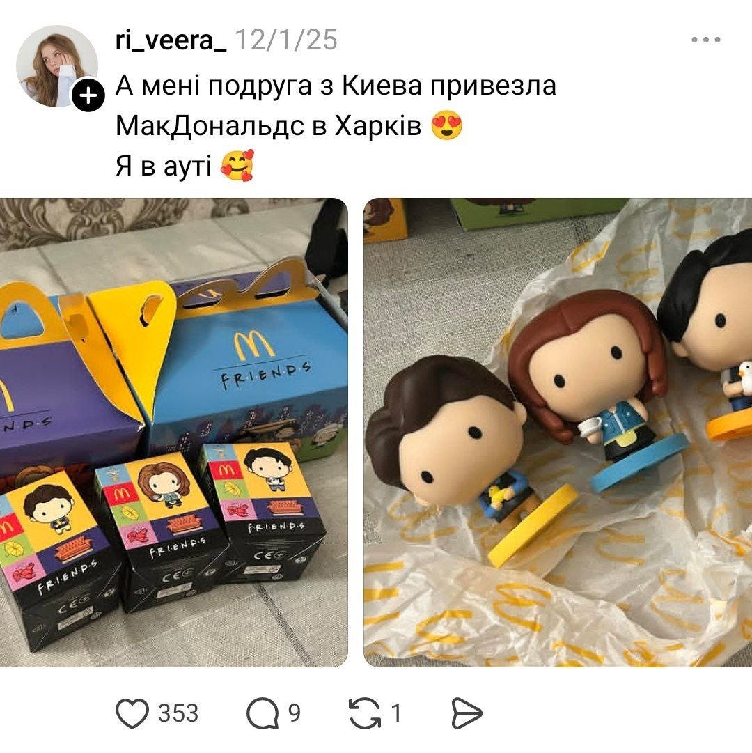 Vitalii confessed that the Ukrainians are so obsessed with the show that they asked to buy caps that were part of workers’ uniform and said ‘McDonald’s - Friends’.