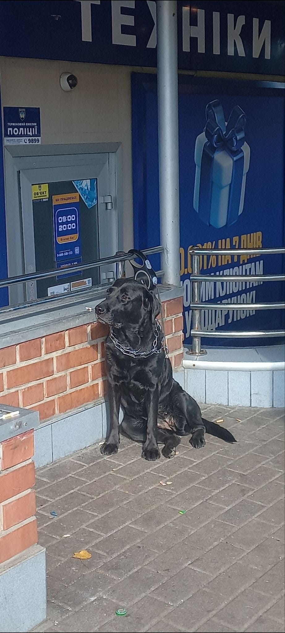 Zoriana met this very focused dog near the supermarket close to her home. He was waiting for his owner, keeping an eye on the door, and then greeted him cheerfully with loud barks.