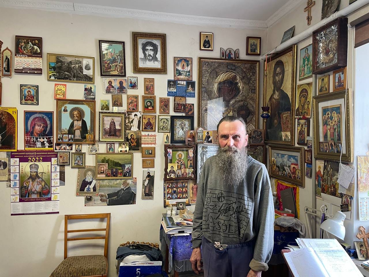 "By the looks of all the people who bring him food and things, they are monks from the Moscow Patriarchate, from a monastery not far from here," Vitalii Cherkasov said.