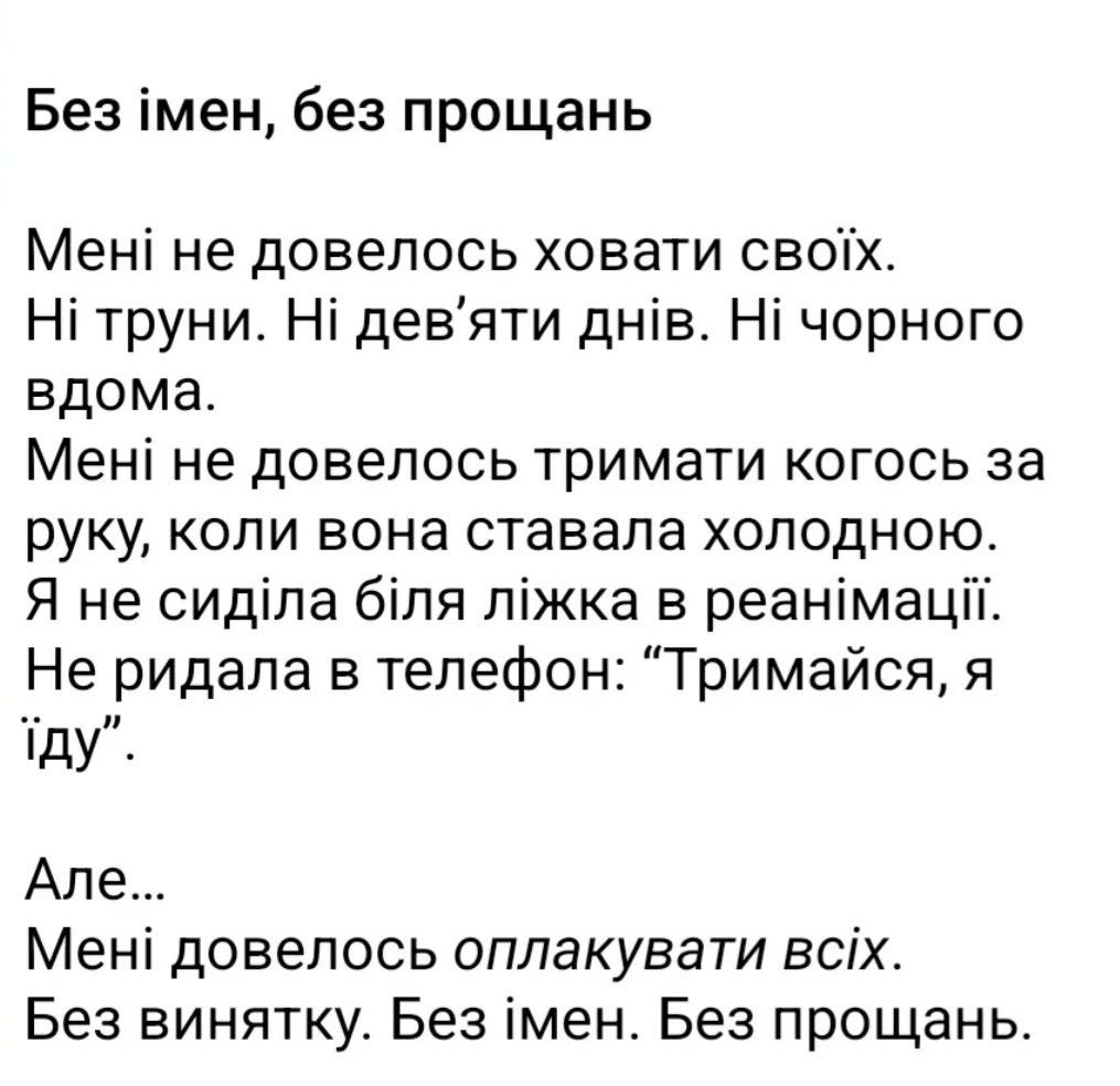 “For those who haven’t lived through this, it is pathologically difficult and sometimes impossible to understand,” Natalia said. “Not because they are bad or cruel, or somehow different, but because their scale of pain is different from ours.”