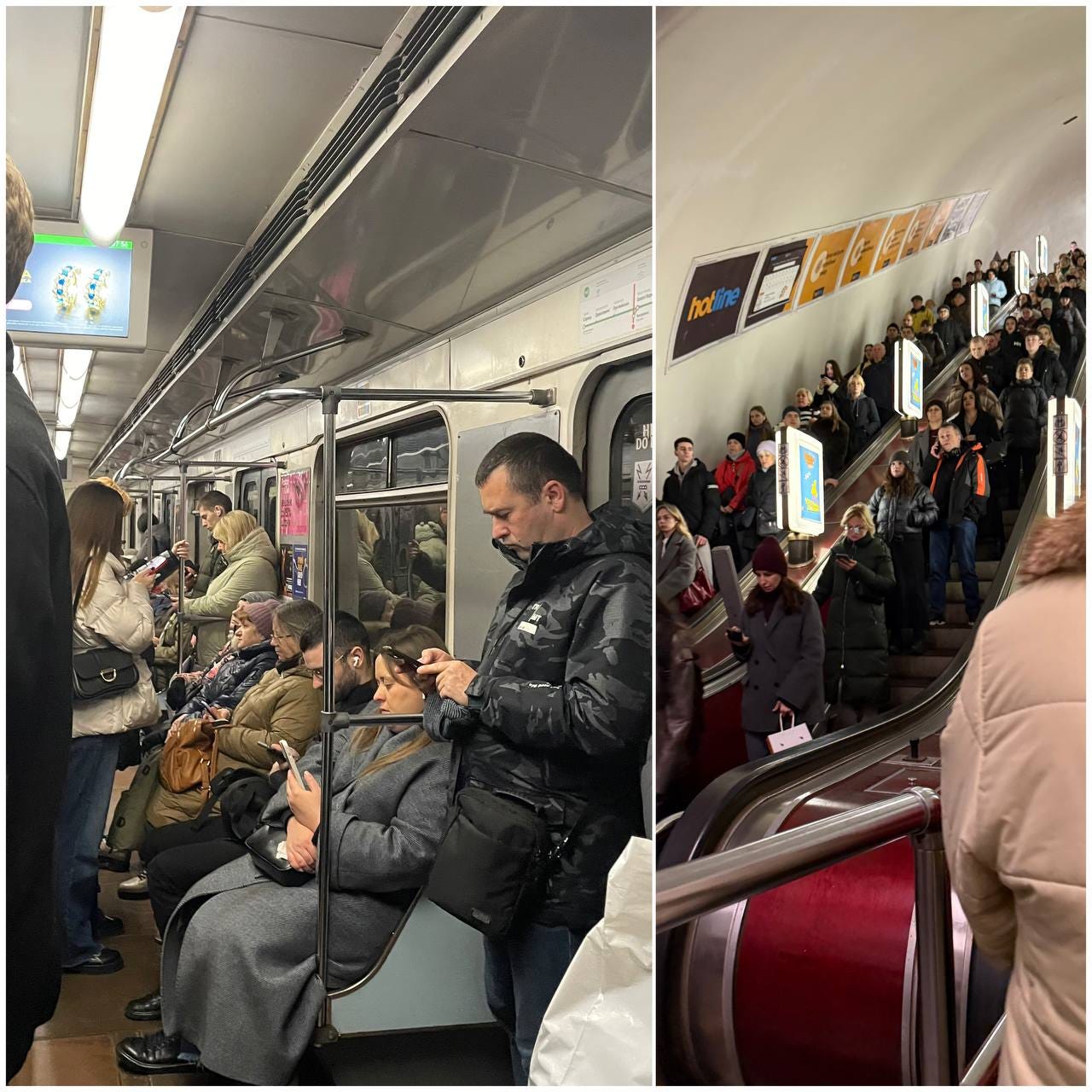 Monday, 9:15 am. It's rush hour on the subway in Kyiv. A crowd jostling amid a wall of bodies.