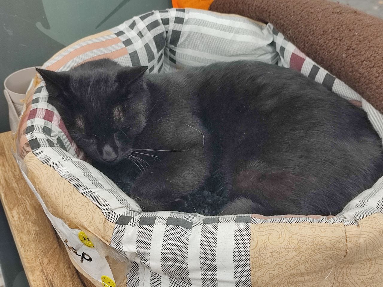 Nastia met this peacefully sleeping cat while doing some shopping – a local shop takes care of him and provides him with a bed. He sleeps right near the entrance and greets every customer. He also has a little tip jar, to keep him fed.